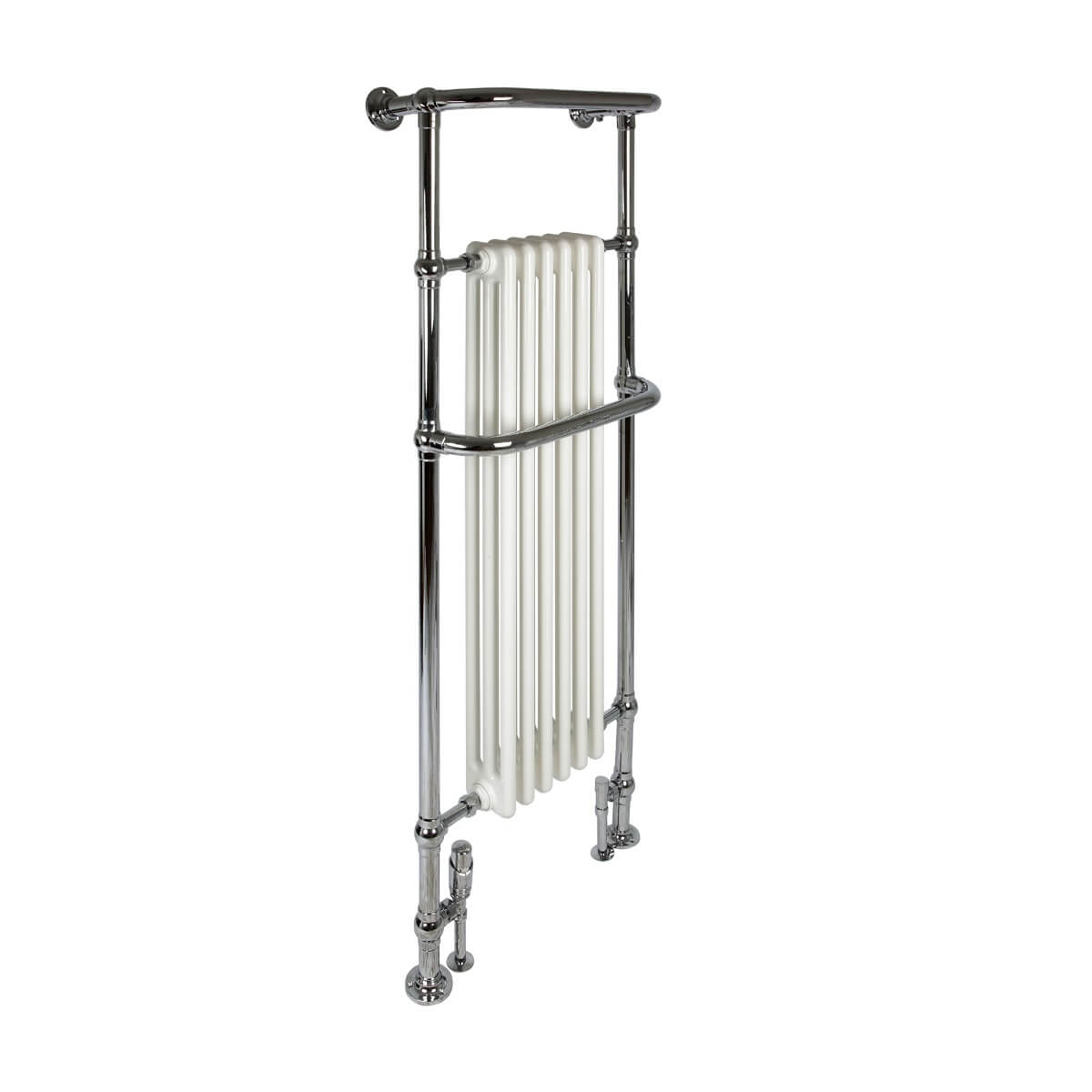 Superior build quality tall bathroom radiator and towel warmer. Chrome plated frame with white tubular steel. Made in Europe to ISO 9001:2008 and EN442. Use on its own to heat medium sized bathrooms or together with a cast iron radiator to heat larger spaces. Pair with All Chrome TRV valves for self-regulated heating or manual Chrome Angled Crosshead valves. Finish with Chrome shrouds and base plates to cover the copper pipe. Guaranteed against all manufacturing defects for 10 years.